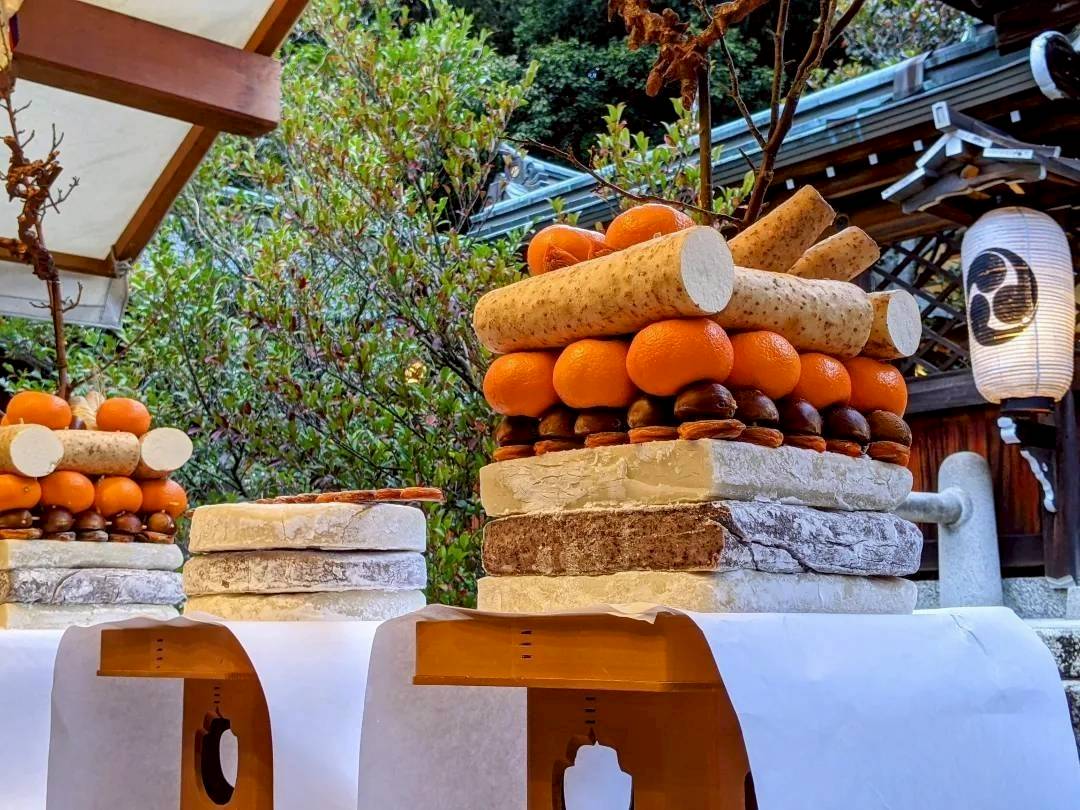 また、一月十八日の早朝には氏子総代が参集し、伝来の式に則り、みかん・干柿・長芋・栗・梅枝などを積み合わせ、御神前に献じます。これらの供物は、厄除けと豊穣を祈る心をあらわし、古来より受け継がれてきた大切な作法のひとつです。
